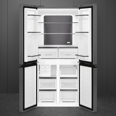 Smeg FQI48KD erbjuder gott om förvaringsutrymme med en total nettovolym på 488 liter, vilket gör den perfekt för stora hushåll eller dig som gillar att bjuda hem gäster. Kyldelen rymmer 322 liter, vilket ger plats för en mängd olika färskvaror, drycker och andra kylvaror. Frysen, med en nettovolym på 166 liter, är idealisk för frysta varor och ger gott om plats för alla dina behov.