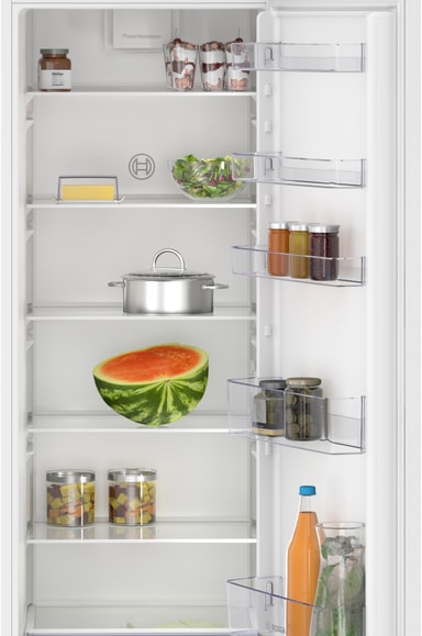 KIR815SE0: Snyggt inbyggt kylskåp med 310L kapacitet, LED-belysning och supercool funktion, designad för sömlös integration och tyst drift.Läs mer om produkten