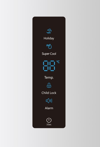 Du kan kontrollera och justera temperaturen efter din bekvämlighet. Kylskåpet kommer även med barnlås och larm för extra säkerhet.