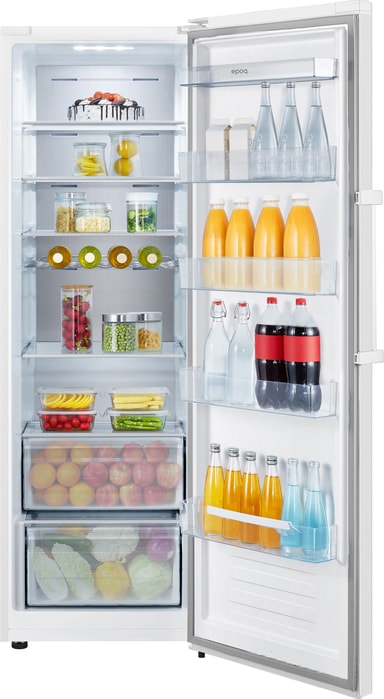 Epoq-kylskåp ETR185W23D är ett högt, fristående kylskåp som kommer med frostfri teknik och Multi-airflow-cirkulation för oavbruten kylning. Kylskåpet har även LED-lampor, vändbar dörr och ergonomiskt handtag som lätt öppnas.