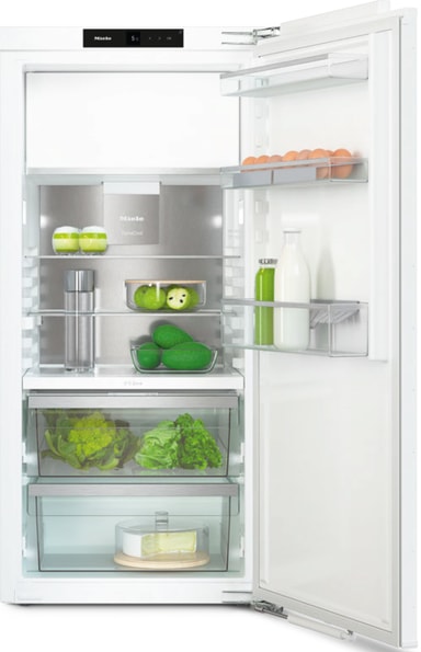 Mieles kylprodukter med ComfortSize ger gott om utrymme för förvaring av mat. Det större djupet gör att du enkelt kan skjuta in en bakplåt (B x H x D: max 466 x 50 x 386 mm). Detta ger utrymme för att enkelt rymma även skrymmande föremål.