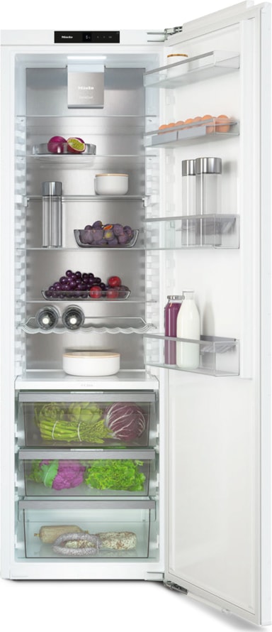 CleanSteel-bakväggen på ditt Miele-kylskåp upprätthåller en idealisk kylnivå inuti skåpet och ser till att den fördelas jämnt. Det finns inga synliga spår av kondensat eller is.