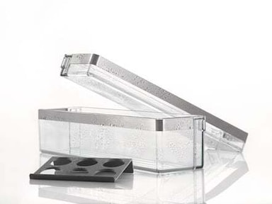 Miele ComfortClean dörrhyllor är tillverkade av högkvalitativ, högtransparent plast och är extra tåliga mot repor, kemikalier och temperaturvariationer. ComfortClean-dörrhyllorna kan enkelt och hygieniskt rengöras i diskmaskin (upp till 55 °C). Ingen manuell urtorkning av hyllorna behövs.