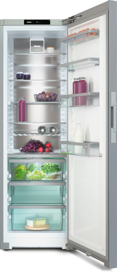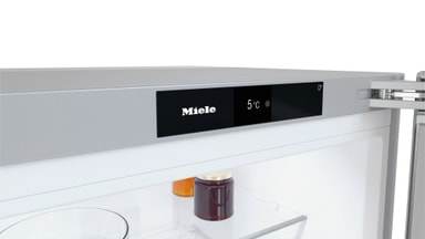 Stora flaskor eller små konserver – hyllorna på insidan av Miele-kylskåpsdörren kan enkelt och flexibelt ställas in på höjden. På detta sätt kan du skapa plats åt alla typer av livsmedel.