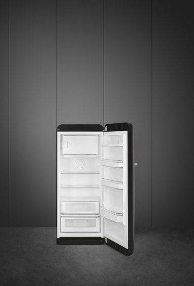 Snyggt designade Smeg 50's Style kyl / frys FAB28RDBB5 har utseendet, interiören och funktionerna för att göra den till en enhet som du kan räkna med i åratal.