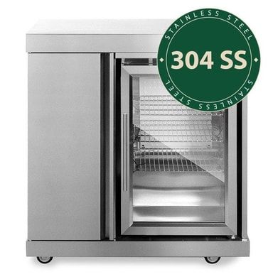 Fristående modul med kylskåp och förvaringsskåp helt i rostfritt stål. Kylskåpet har kompressorkylning och kan hålla 3-16°C. Modulen har även ett stort förvaringsskåp för torrvaror. Passar perfekt in i uteköket!