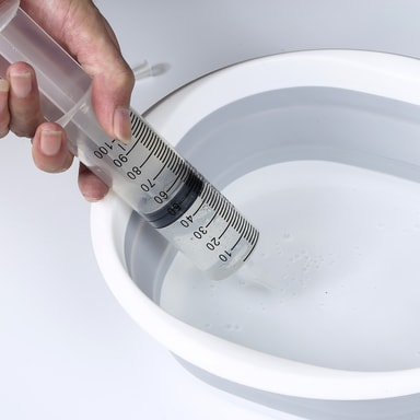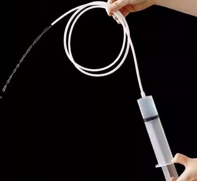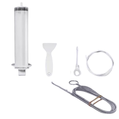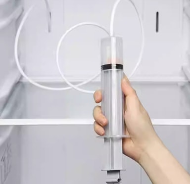 Spruta och slang: Med 100 ml-sprutan och 1,5-metersslangen rensar du enkelt bort överflödigt vatten och rengör svåråtkomliga områden i ditt kylskåp.
