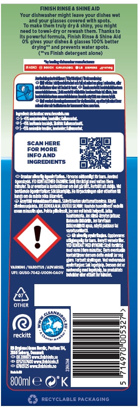 Med Finish sköljmedel för diskmaskin 3244774 förkortar du diskens torktid och minskar risken för vattenfläckar och får en skinande ren disk. Den speciella formeln aktiveras under den sista sköljcykeln och avlägsnar alla mat- och diskmedelsrester.