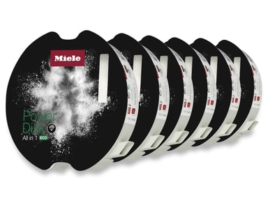 Skaffa ett Miele PowerDisk Set 11868780 till din Miele diskmaskin med AutoDos. En PowerDisk med miljövänlig och doftfri vätska håller i upp till 20 diskcykler. Förpackningen innehåller 6 st.