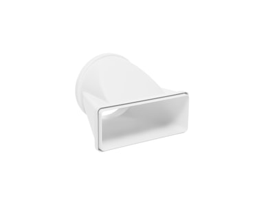 Installationsdel till induktionshäll med inbyggd fläkt. Röranslutning för Fläktinstallation. Horisontell anslutning från rektangulär (220mm x 90mm) till rund (Ø 150 mm). Innehåller 1 st.
