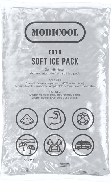 Med Mobicool ispåse behöver du inte oroa dig för att den djupfrysta maten ska tina. Sätt in denna 600g isförpackning i en kylväska och den kommer hålla din mat fryst i flera timmar. Förpackningen är perfekt för frysta och färska matvaror, och tack vare dess flexibilitet kan den ligga nära varorna, vilket resulterar i en mer pålitlig kyleffekt. När den är uppvärmd kan den även användas som en varm kudde.