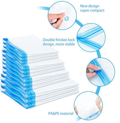 Vakuumpåsarna är den perfekta följeslagaren på resor, utflykter eller camping. Påsarna är också perfekta för användning i hemmet.