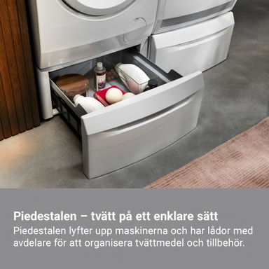 Piedestalen gör det enkelt att tvätta genom att höja upp maskinerna, vilket gör det lättare att lägga in och ta ur tvätten.Läs mer om produkten