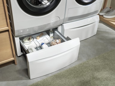 Back-saving pedestal raises your washer by as much as 30cm for easier access when loading, transferring and removing clothes.