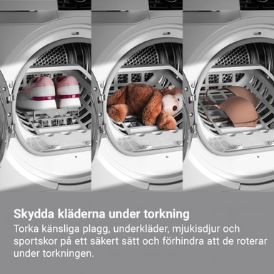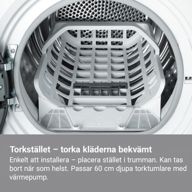 Torkstället torkar ömtåliga plagg skonsamt – utan torktumling. Placera stället i trumman för att varsamt torka till exempel ulltröjor, silkesblusar eller mjukisdjur.Läs mer om produkten