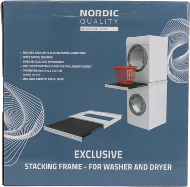 Använd Nordic Quality monteringsram för säker placering av torktumlare ovanpå tvättmaskin.Läs mer om produkten