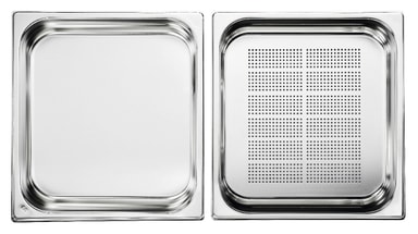 Electrolux stort professionellt ångset för ugnar med full ånga. Hög kvalitet i rostfritt stål för ångmatlagning. Innehåll: x1 perforerat tråg samt x1 helgjutet tråg att användas separat eller tillsammans. H: 55 mm / B: 325 mm / D: 354 mmLäs mer om produkten