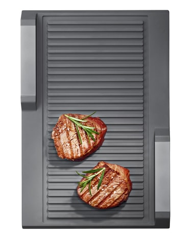 Njut av perfekt grillade kött- och fiskrätter eller grönsaker tack vare Siemens grillplatta HZ390522, som förvandlar din häll till en grill.