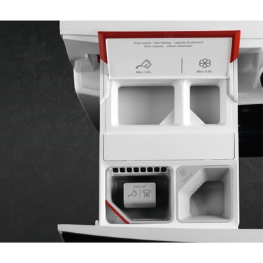 Med Autodose slipper du dosera tvättmedel på nytt inför varje tvätt. Du kan fylla på med upp till 1 l tvättmedel och sensorer i tvättmaskinen beräknar optimal mängd tvättmedel och sköljmedel för varje tvätt. Som resultat använder tvättmaskinen upp till 60% mindre tvättmedel* – Autodose förhindrar överdosering vilket reducerar slitage på bomullskläder*. *Enligt intern testmetod för mängden tvättmedel som används för 2kg tvätt med AutoDose jämfört med genomsnittlig manuell dosering