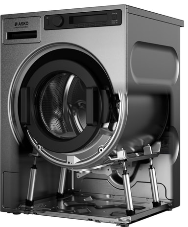 Yttertrumman i en ASKO Professional-tvättmaskin är tillverkad i slitstarkt rostfritt stål. Varför? Eftersom den blir tåligare, har högre kvalitet och gör det möjligt att tvätta vid högre temperaturer och centrifugera med högre hastighet. Även de främre och övre plåtarna är tillverkade i rostfritt stål.