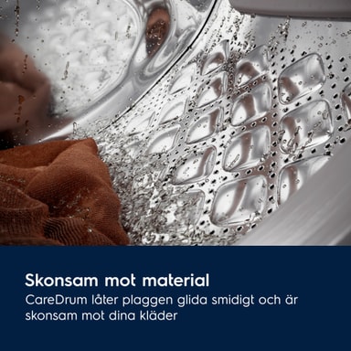 CareDrum låter plaggen glida smidigt tack vare sitt förhöjda, kuddliknande trummönster och lyftpaddeln. Trummans unika mönster ger dina plagg en skonsam klädvård.