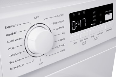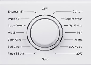 Tvättmaskinen erbjuder 16 program för olika material och plaggtyper. Du kan välja mellan Quick 15; Rapid 45; Sport Wear; Wool; Baby Care; Bulky/Bedlinen; Rinse & Spin; Spin Only; 20 ℃; ECO 20-40; Jeans; Mix; Synthetic; Steam; Cotton. .