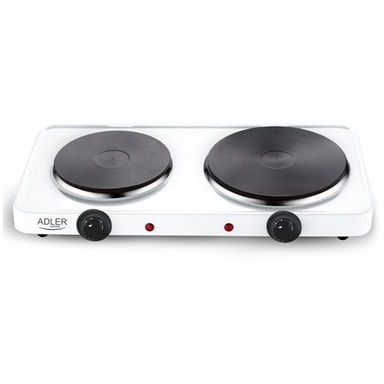 Adler Bordsspis med 2 spisplattor Tack vare den elektriska spisen med två plattor är det möjligt att laga eller steka med två värmeplattor med en total effekt på 2500W (en större och en mindre värmeplatta). AD 6504 kan bevisa sin användbarhet i en mängd olika situationer: när det finns ett haveri i gasnätet eller när tillgång till ett sådant nätverk är omöjlig. Den kan även användas under t.ex. renovering av kök, när man inte kan använda den spis som normalt är installerad. Elspisen kan även användas i sommarstugor eller när du åker på semester där det inte finns tillgång till gasspis. Det är ett säkrare alternativ till spisar som måste kopplas till en gasflaska Total effekt 2500W Värmeplattor diameter: 185mm, 155mm Termostat temperaturkontroll Smidig temperaturjustering Modell: AD 6504