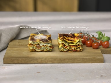 Spara energi och få jämn värme med hjälp av inverterteknik. Funktionen levererar ett kontinuerligt flöde av mikrovågor för en jämn och enhetlig uppvärmning som även värmer maten snabbare.