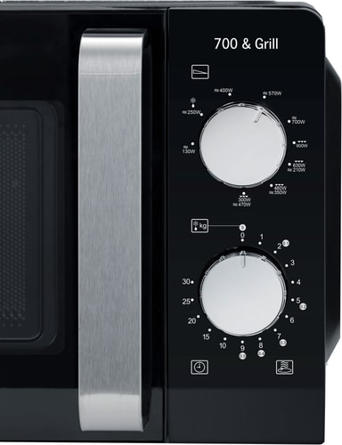 Mikrovågsugnen har en total uteffekt på 1600 watt, 700 för mikrovågen och 900 för grillen. De 9 effektnivåerna förenklar dina matlagningsuppgifter.