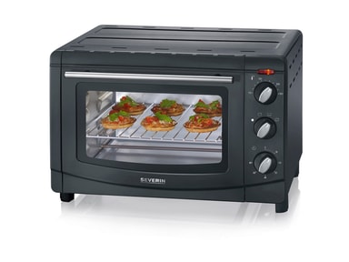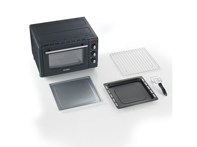 Mångsidig miniugn som är perfekt för tillagning av både mindre och större rätter. Ugnen har en kapacitet på 20 liter och rymmer pizzor med en diameter på upp till 30 cm. Till ugnen medföljer grillgaller, bakplåt och en utdragbar smulbricka. 1500 W. TO 2067 Med en miniugn får du många av samma möjligheter att baka och steka som med en vanlig ugn. Ugnen har en praktisk storlek som gör att det är enkelt att placera den i mindre kök, till exempel i sommarstugan eller ett litet pentry. Miniugnen kan också användas som ett komplement till din vanliga ugn om du behöver lite extra ugnsutrymme. Effekt: 1500 WKapacitet: ca 20 liter60 minuters timer med ljudsignal när tiden har gått Kort uppvärmningstidTemperaturinställning 100 – 230 °C 4 höjdnivåer för plåt och gallerVärmebeständig lackÖver- och undervärme som kan kombineras eller användas separatFärg: SvartGrillgaller: B 31 cm, L 30 cmBakplåt: B 31 cm, L 28 cmMått: L 43,5 cm, B 40 cm, H 30 cm