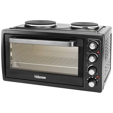 • Tristar-konvektionsugn med två kokplattor, Grillgaller, Bakplåt, Handtag, Bruksanvisning.