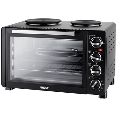 Unold All in One Miniugn Kontrolljus 30 lCa 30 liter bak-, grill- och roteringsspettugn med 2 kokplattor4 värmeelement i rostfritt stålVärmeisolerat ytterhölje för energibesparingBakrumsstorlek: Ca 36 x 29 x 23 cmInställbar temperatur på 100 °C tillLäs mer om produkten