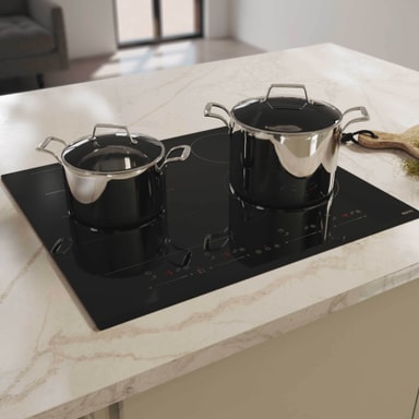 Denna induktionshäll har 4 kokzoner, som var och en är utrustad med en boosterfunktion.