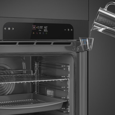 Inbyggd ugn med pyrolytisk rengöringsfunktion och 20–40 % ånga