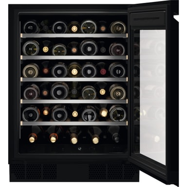 Visa upp hela din kollektion med 800 Perfect Shelving-funktion. De utdragbara trähyllorna har designats med perfekta mellanrum för att rymma vanliga 750 ml flaskor, även din favoritchampagne, utan att repa etiketterna.
