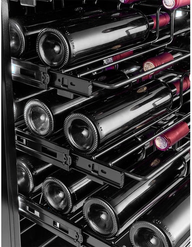 Label view-hyllorna visar vinflaskorna så att du får en tydlig överblick över din vinsamling. Dessa hyllor kan dras ut för att rymma olika flaskor.