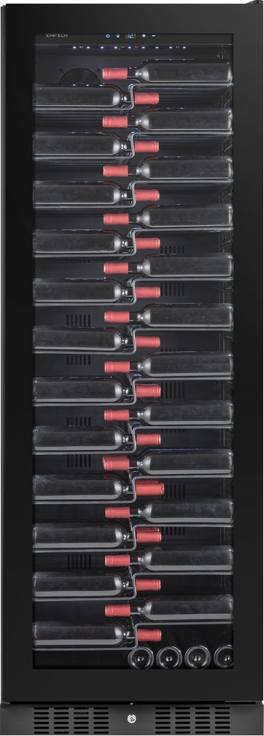 Temptech vinkyl CPRO1800SRB-24 är designad för att visa upp din eleganta vinsamling. Den kommer med en nettovolym på 472 liter, 12 hyllor och rymmer upp till 143 flaskor. Vinkylen har Label view-hyllor, en vändbar dörr och LED-belysning för smidig drift.